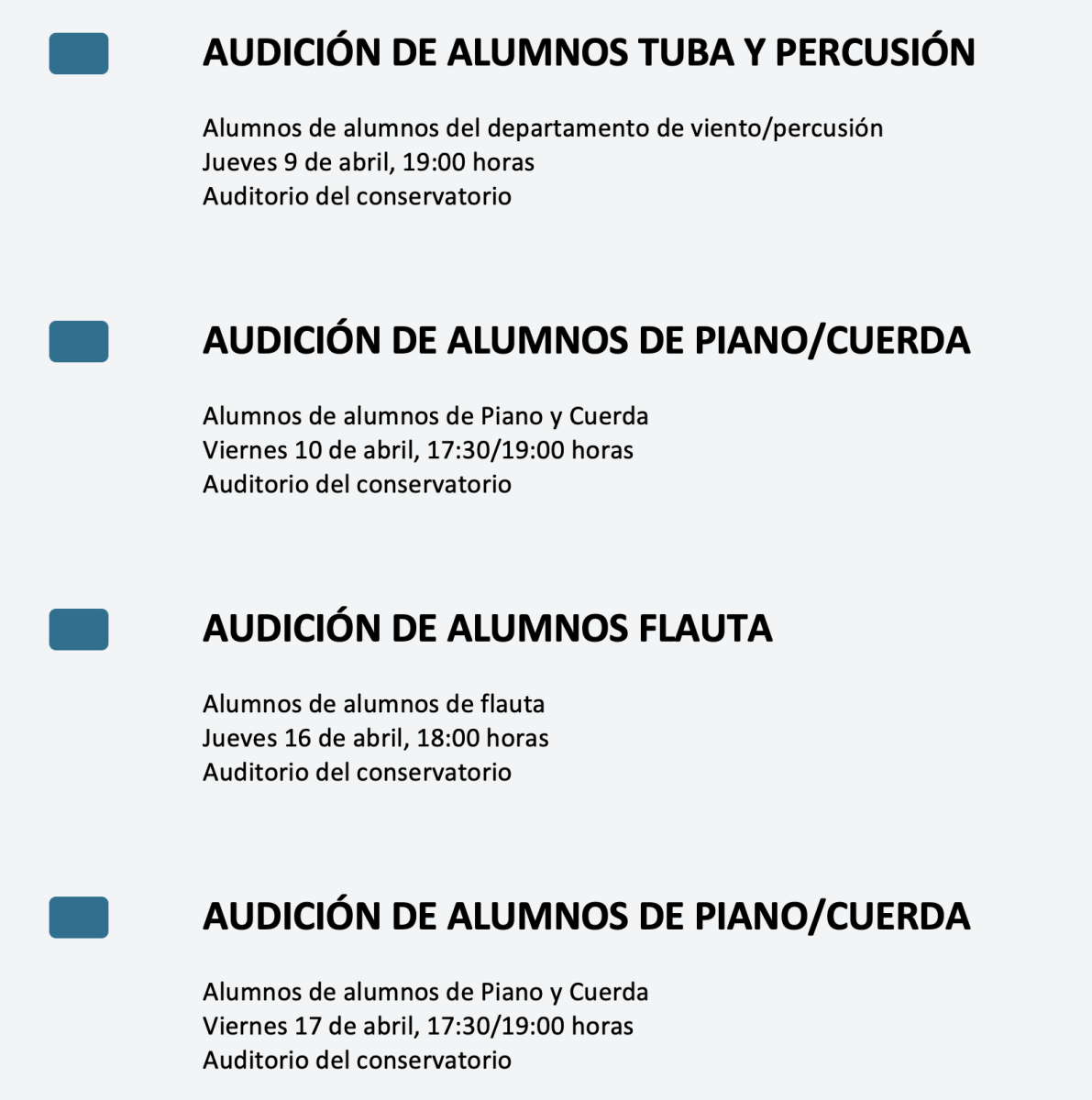 Lista de actividades